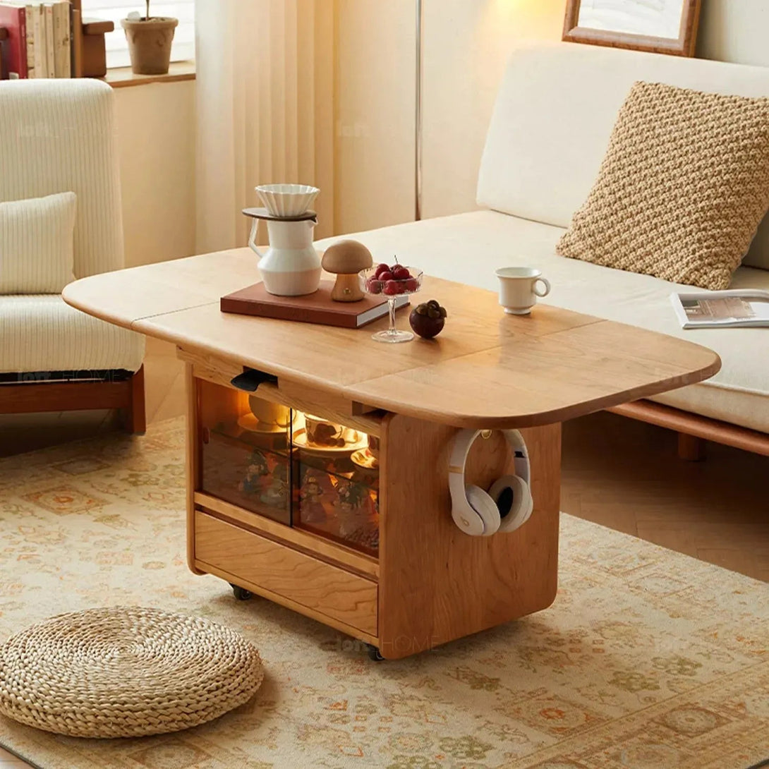 Scandinavian Cherry Wood Extendable Height Adjustable Coffee Table PUTTY