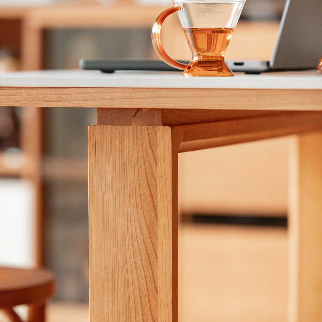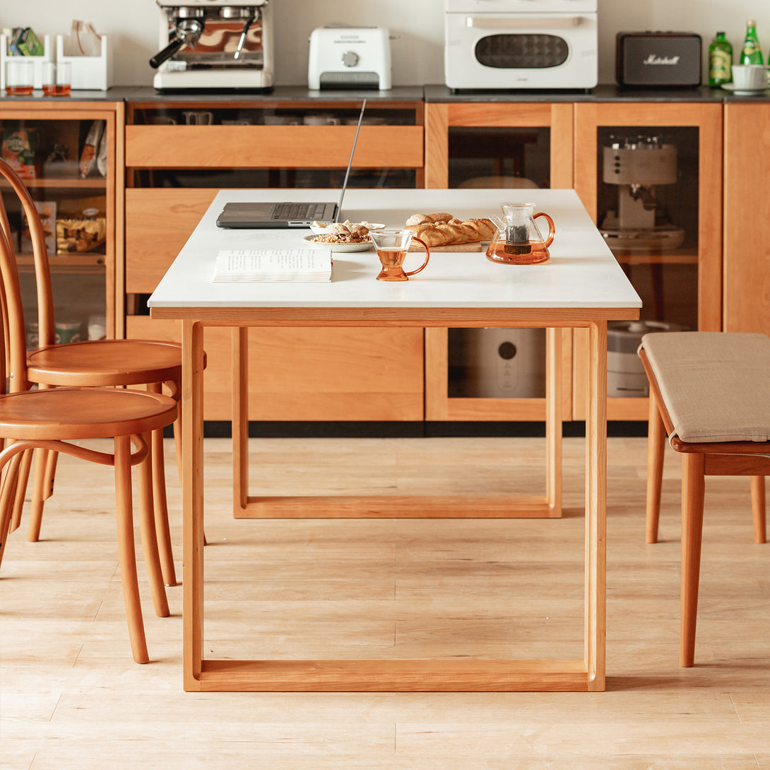 Scandinavian Cherry Wood Sintered Stone Dining Table Azure