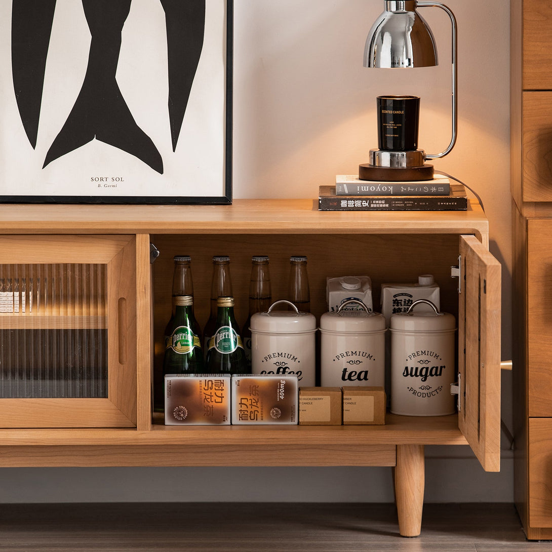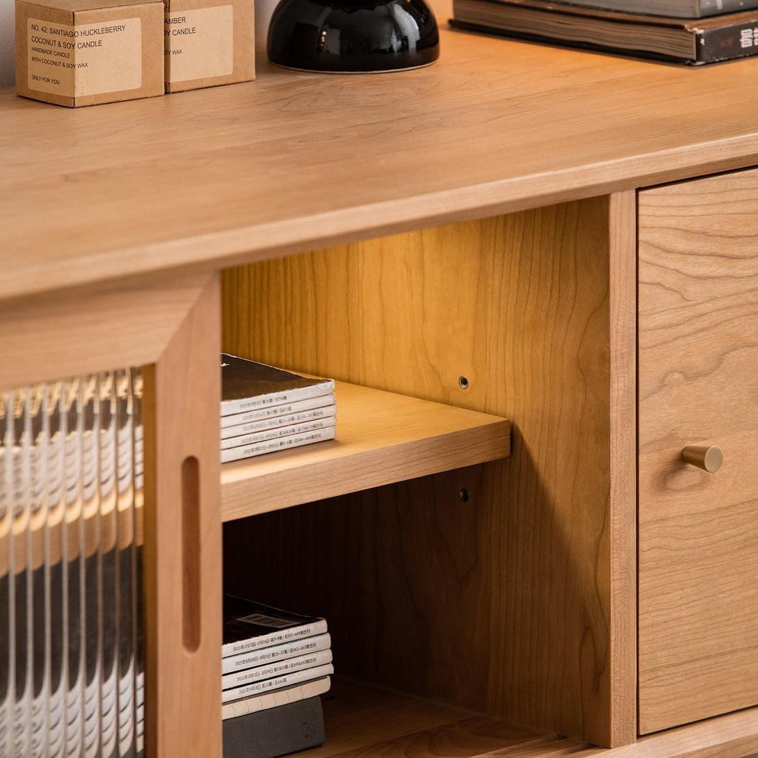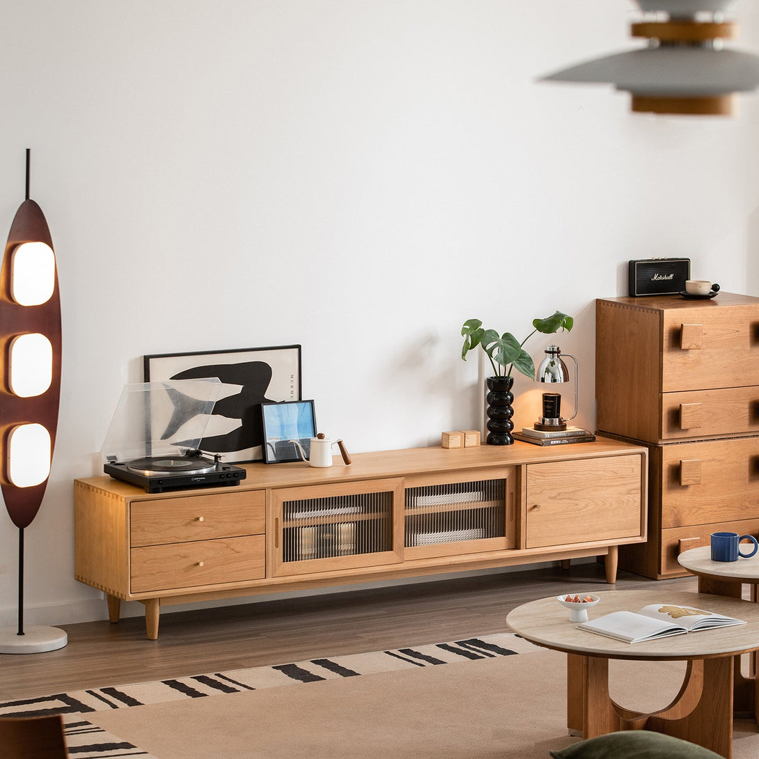 Bold style meets smart storage with the elegant Scandinavian Cherry Wood TV Console GREEN. Crafted from premium cherry wood with triple-zone function.