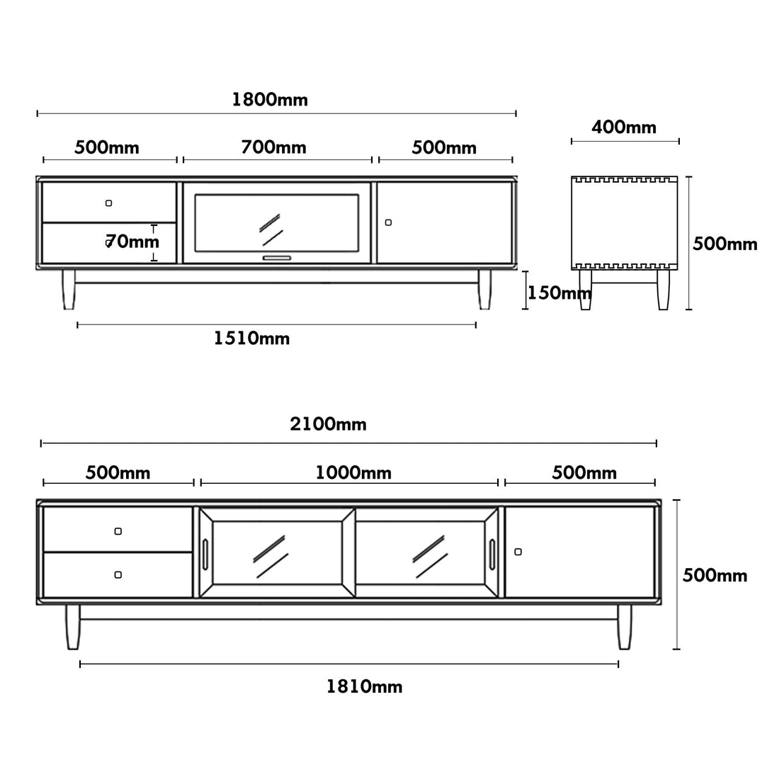 L2100 x W400 x H500mm, L1800 x W400 x H500mm |