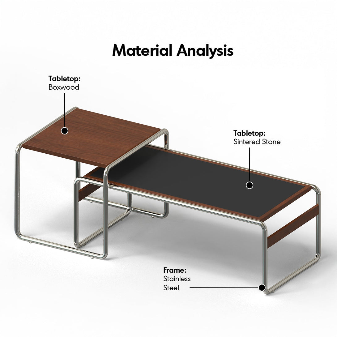 Vintage Boxwood Coffee Table Set RIO features a seamless stone top, sturdy wood frame, and sleek metal legs, perfect for elegant, low-maintenance modern living.