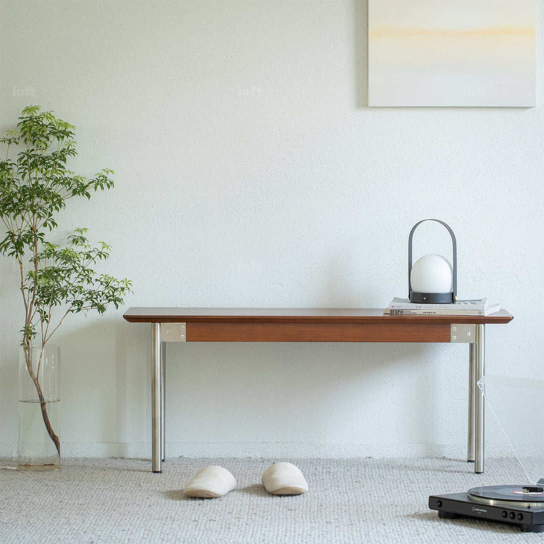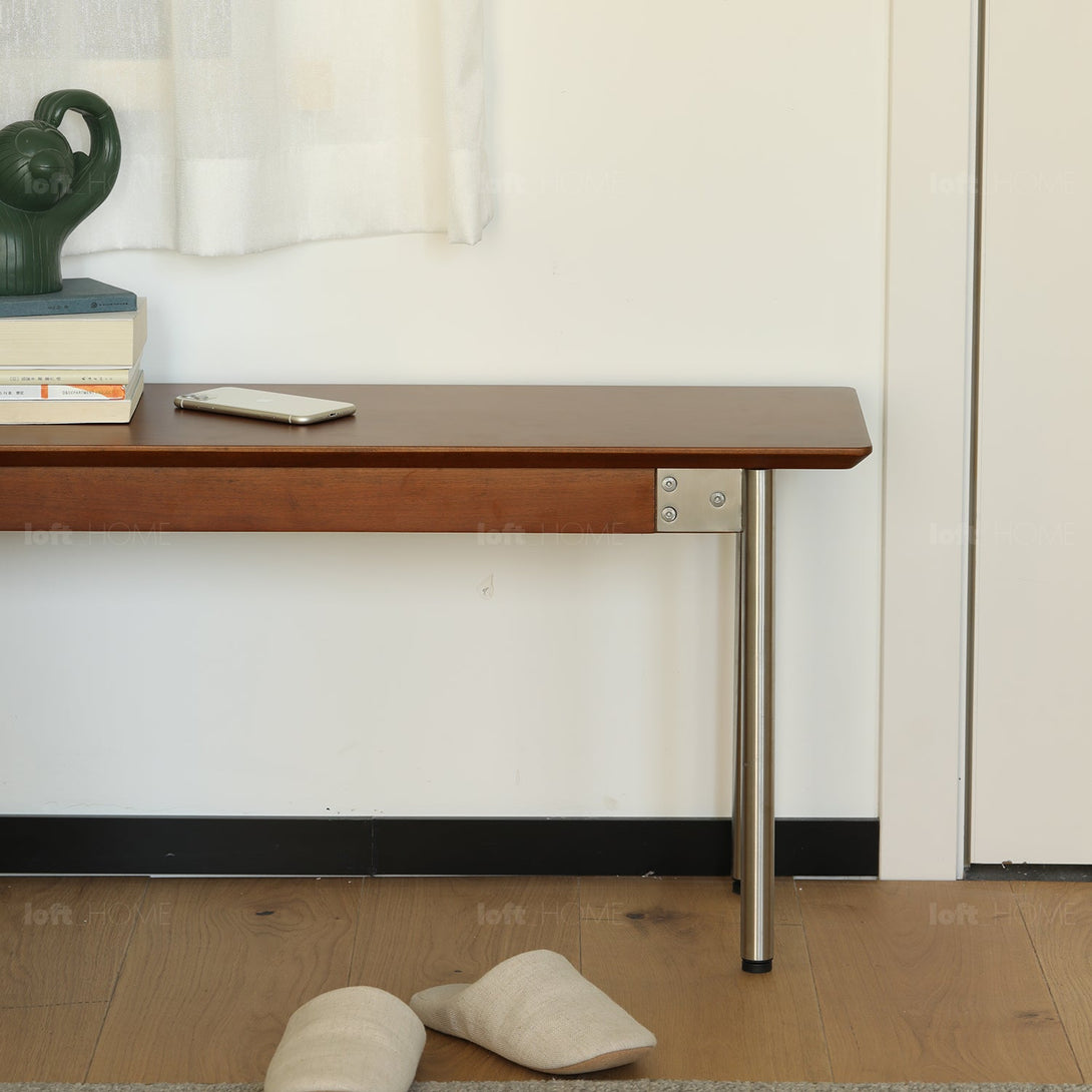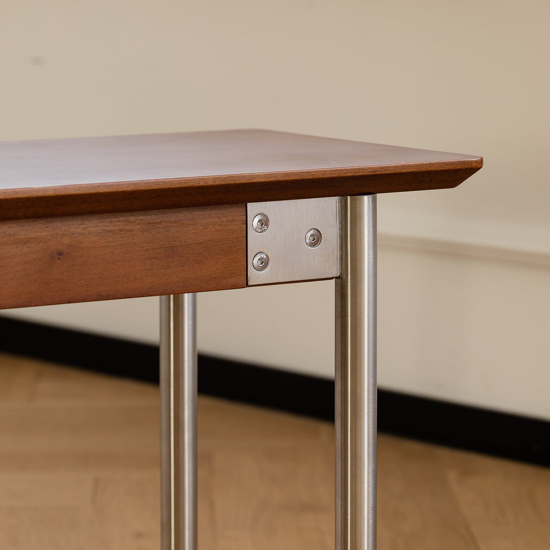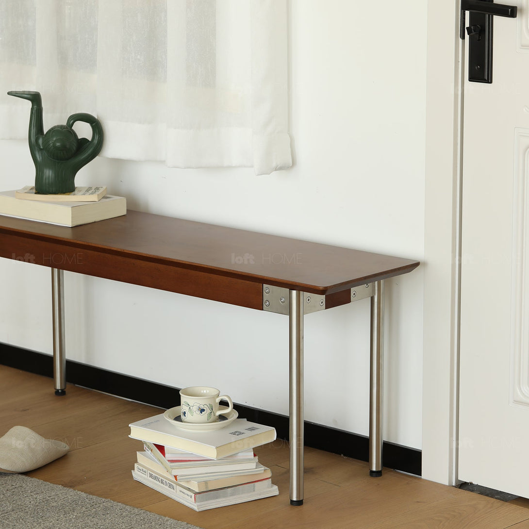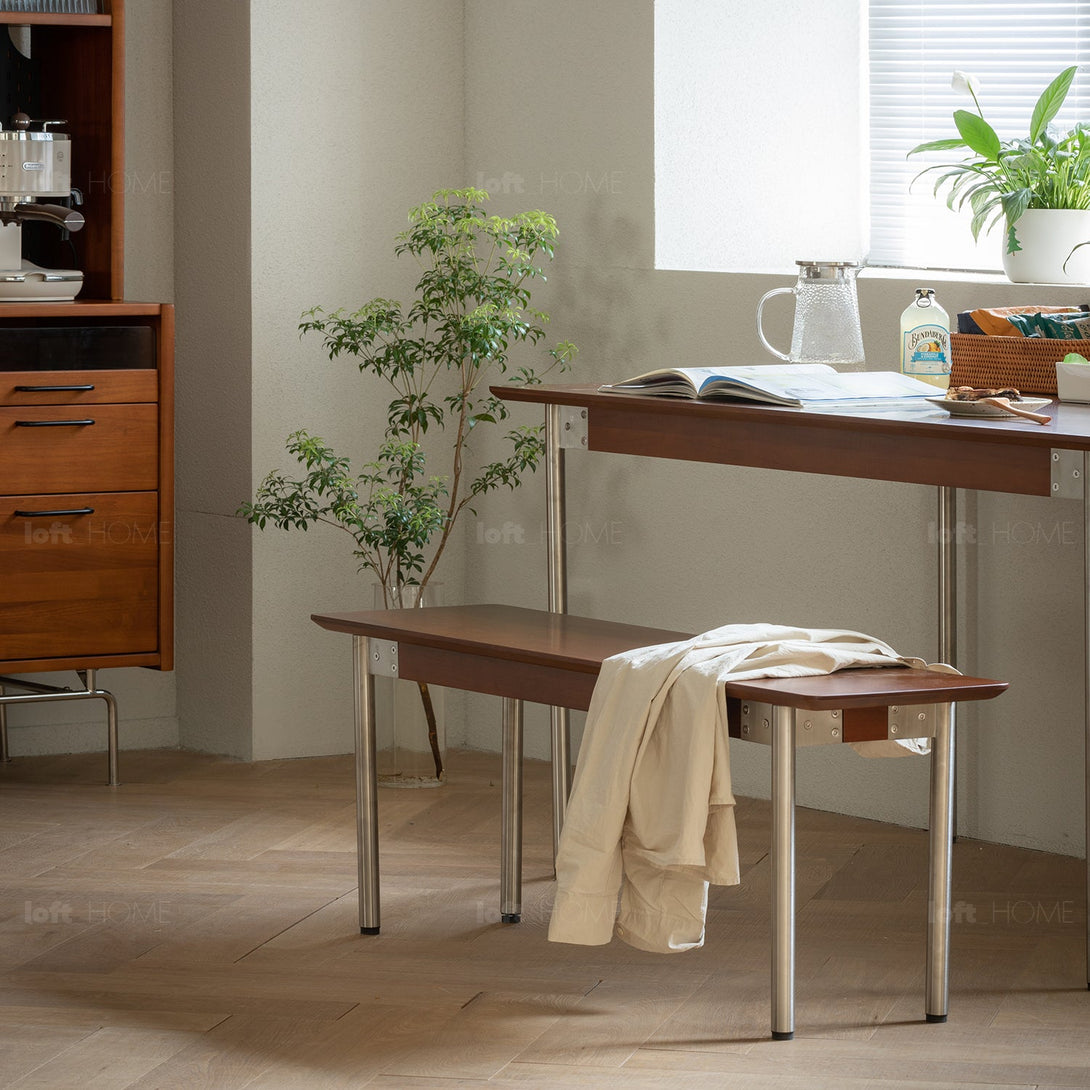 Vintage Boxwood Sintered Dining Bench SEASON combines a thick seat, stainless steel legs, and solid structural reinforcements for stylish, stable everyday seating.