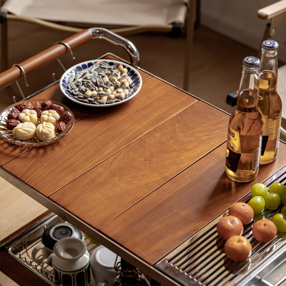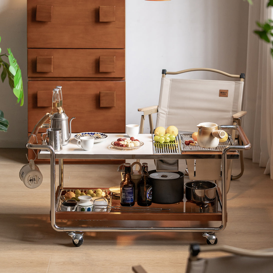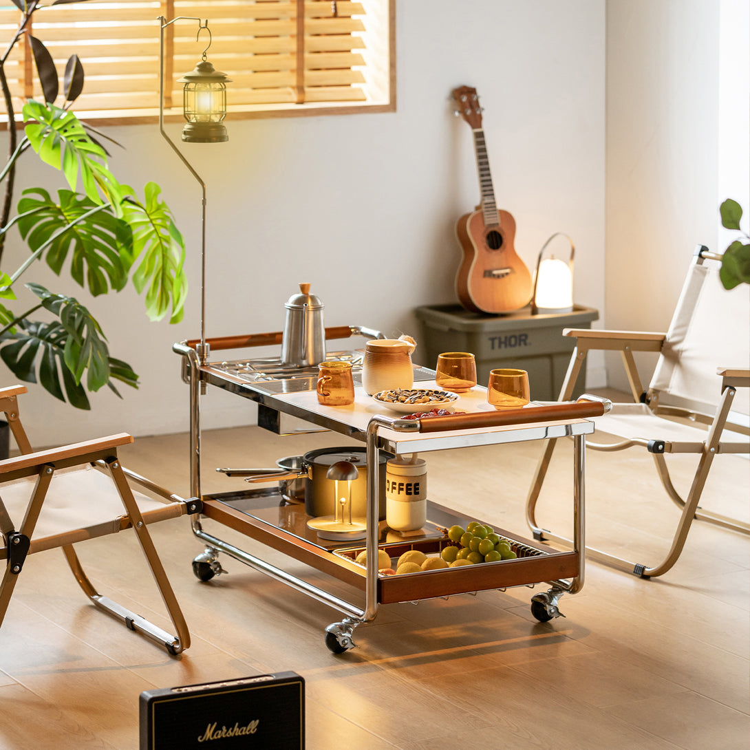 Vintage Boxwood Wheeled Stainless Steel Camping Coffee Table Yufeng