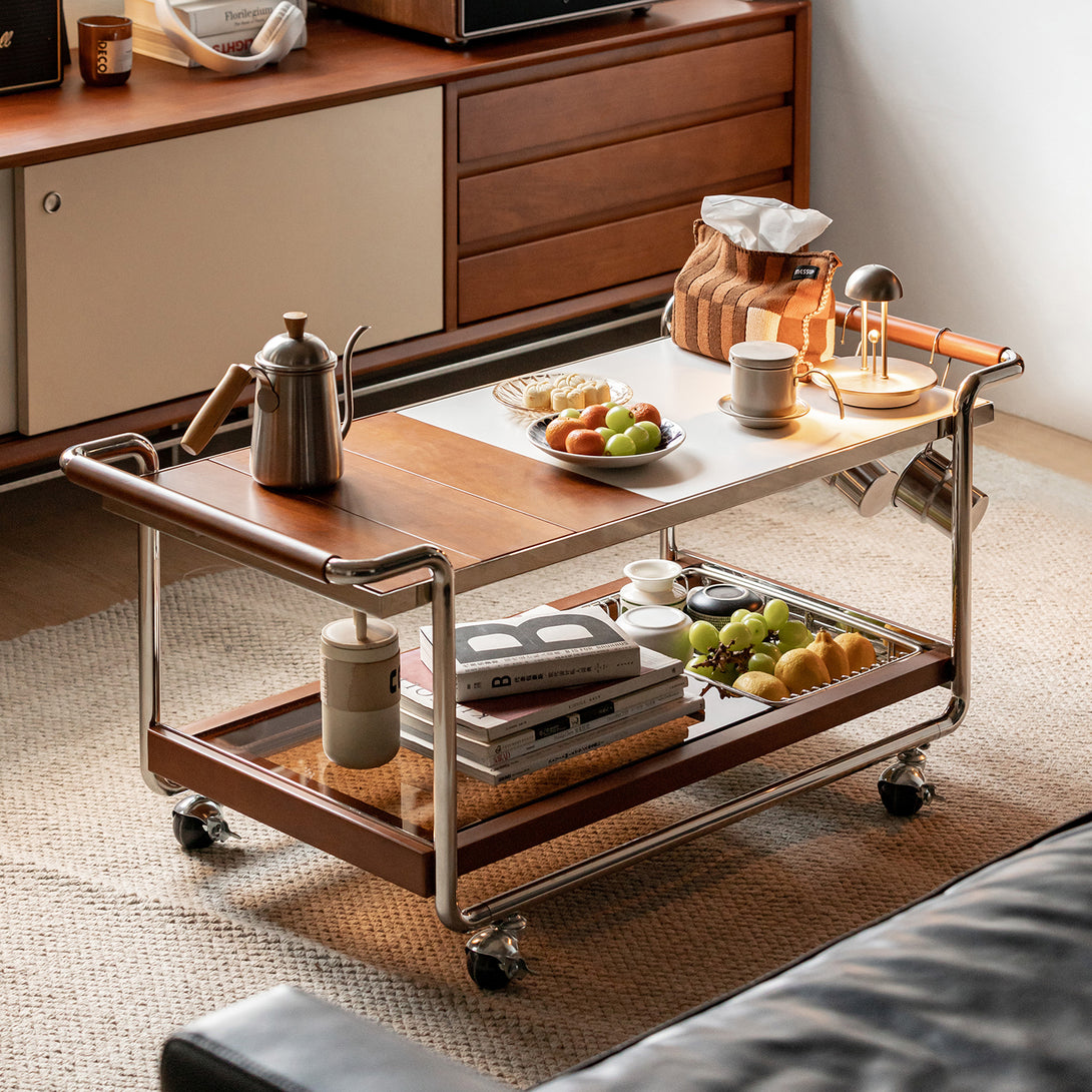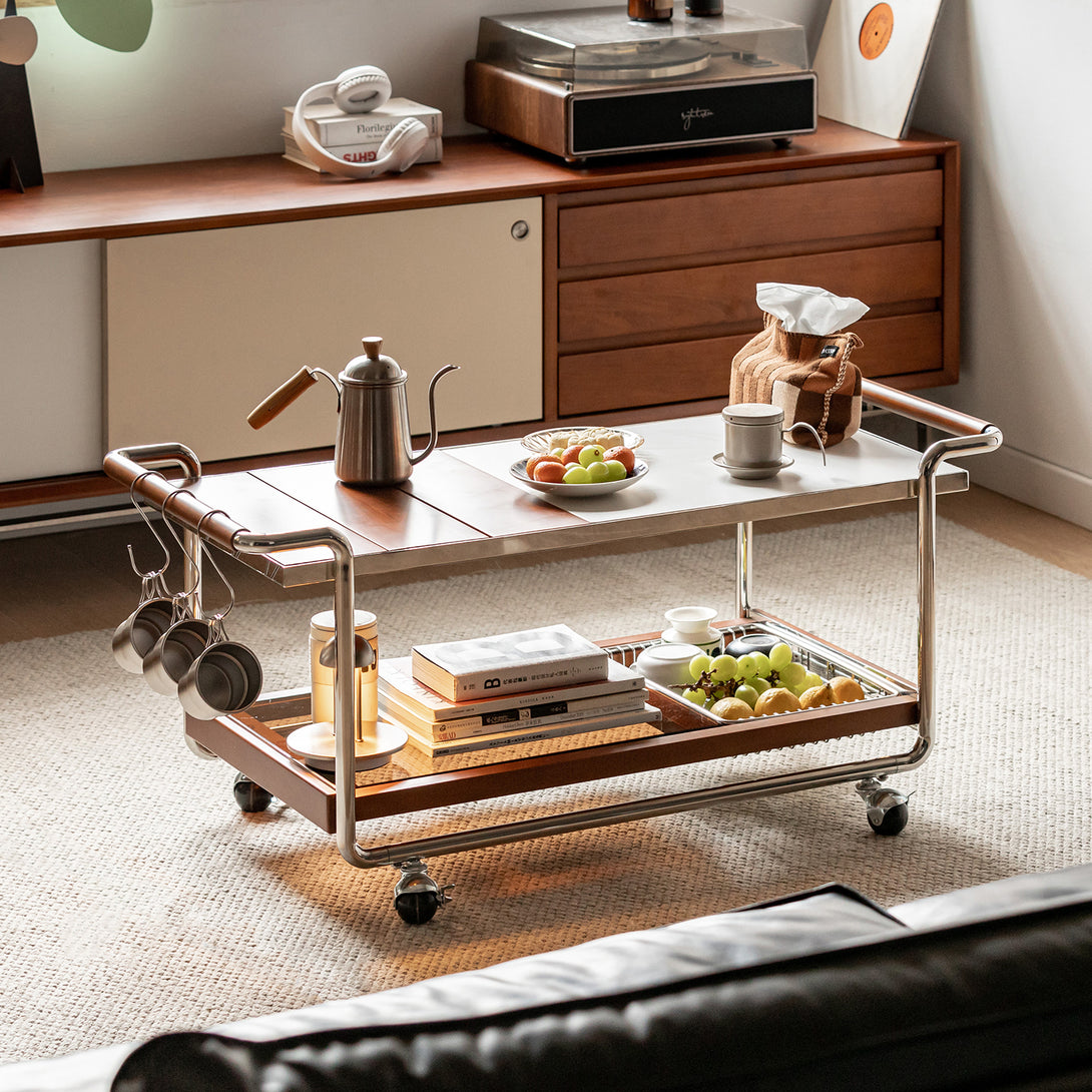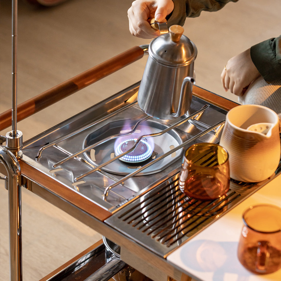 Vintage Boxwood Wheeled Stainless Steel Camping Coffee Table Yufeng